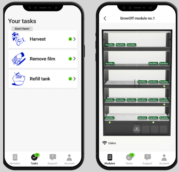 Når du indsætter en ny vækstmedie eller frø og starter dyrkningen, hjælper appen dig med at planlægge og følge med i processen. Du får besked, når det er tid til at fylde vand / gødning på , og hvornår dine planter er klar til høst.